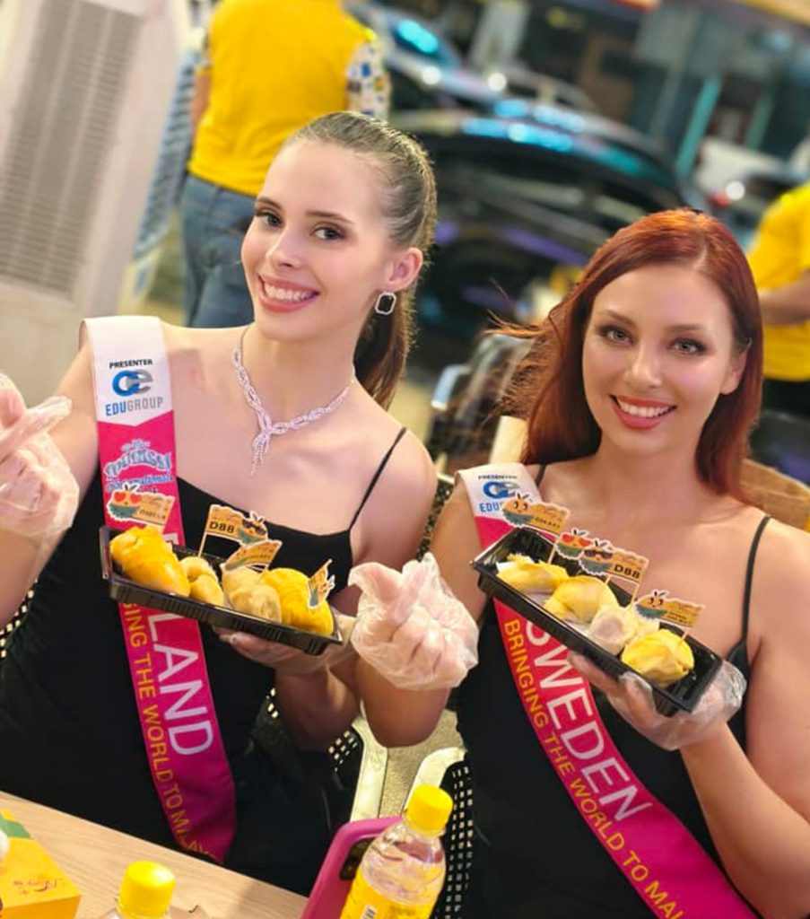 Miss Tourism Kyrgyzstan, Albina Kostikova, won the hearts of the locals with her newfound love of the fruit. Named and sashed as Miss Personality by DKing, presented by Mr Simon, Managing Director of DKing, witnessed by Guest of Honor YB Ng Suee Lim, Mr Leron, Founder of DKing and Tan Sri Datuk Danny Ooi.