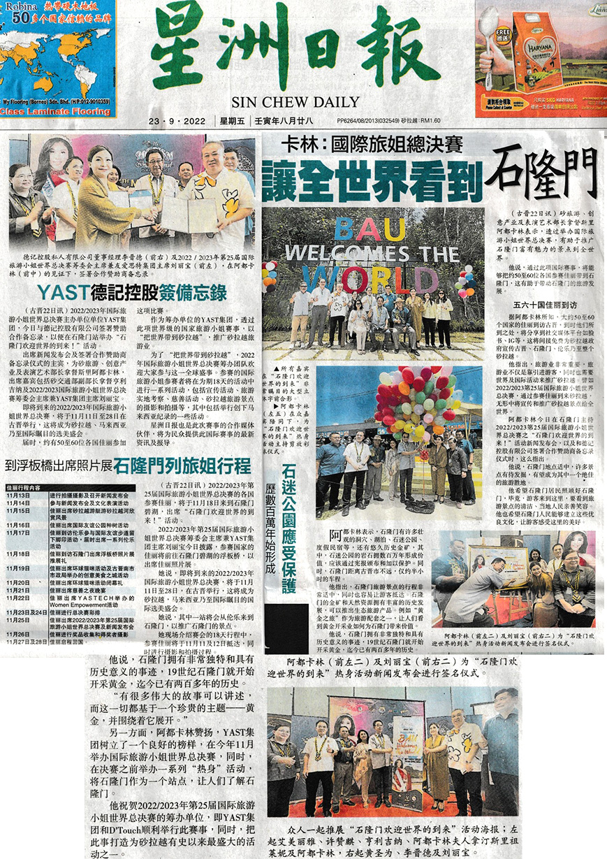 Published by Sin Chew Daily on 23 Sep 2022. Read on online, at here : Link 1 & Link 2 Categories: News, NewspaperOctober 1, 2022Post navigationPreviousPrevious post:MoU inked for Miss Tourism International World FinalNextNext post:Chance to ‘sell’ Bau to the WorldRelated PostsMiss Tourism International 2025 to Shine Bright in MalaysiaOctober 8, 2025MTI 2025 : Press Conference (on Sin Chew Daily)October 8, 2025Voting Now Open for Miss Dreamgirl of the Year International 2025/26September 19, 2025Miss Tourism International 2025 : A World of Beauty and Culture in MalaysiaSeptember 18, 2025Malaysia to Host MTI 2025 at Resorts World Genting this OctoberSeptember 2, 2025Crowning Titles at Miss Tourism International 2025August 29, 2025