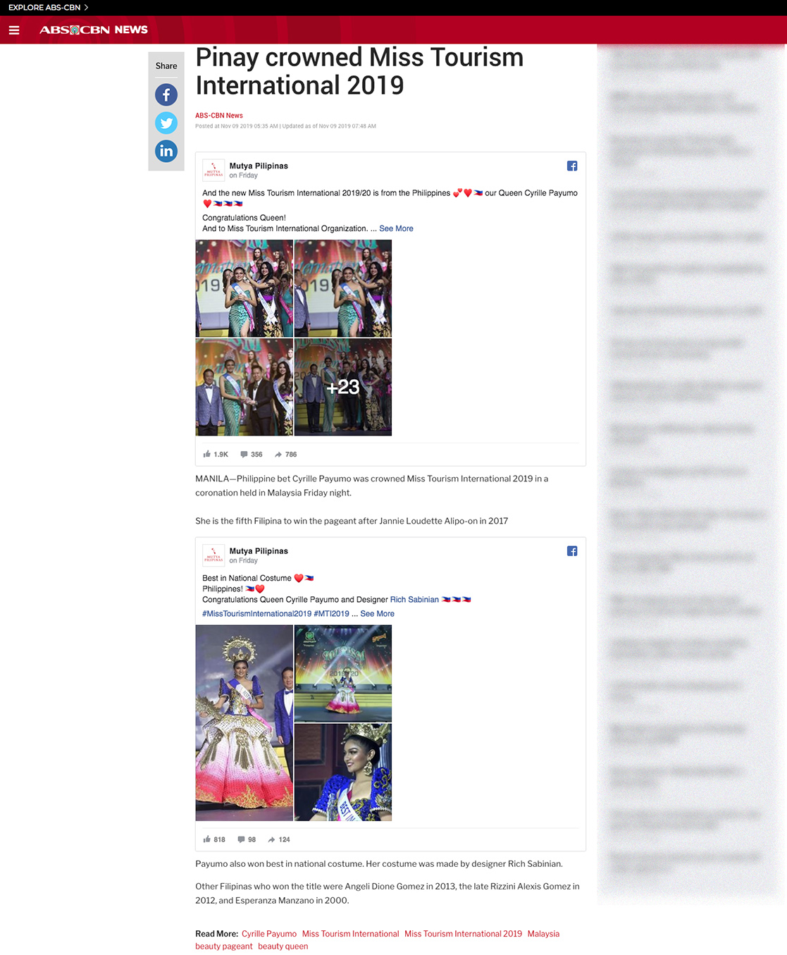 Published by goodnewspilipinas.com on Nov 2019. Read on online, please Click Here ! Categories: News, Online NewsNovember 11, 2019Tags: Cyrille PayumoMTI 2019PinayPost navigationPreviousPrevious post:Philippines’ Cyrille Payumo is Miss Tourism International 2019NextNext post:Cyrille Payumo crowned Miss Tourism International 2019Related PostsMiss Tourism International Crowns Its New Queens For 2025/26!October 20, 2025Miss Tourism International 2025 to Shine Bright in MalaysiaOctober 8, 2025MTI 2025 : Press Conference (on Sin Chew Daily)October 8, 2025Voting Now Open for Miss Dreamgirl of the Year International 2025/26September 19, 2025Miss Tourism International 2025 : A World of Beauty and Culture in MalaysiaSeptember 18, 2025Malaysia to Host MTI 2025 at Resorts World Genting this OctoberSeptember 2, 2025